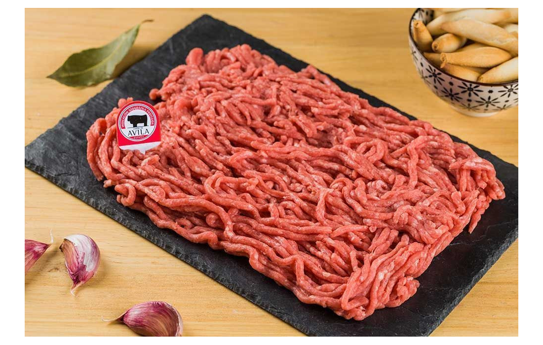 Carne picada magra, de bajo porcentaje graso bajo proveniente de piezas deshuesadas y troceadas a mano. Picada y envasada en pequeñas cantidades, conserva íntegramente su sabor y jugosidad original. 100% vacuno, no lleva conservantes, ni aditivos.